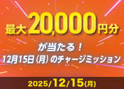 最大20,000円分が当たる!12月15日(月)のチャージミッション