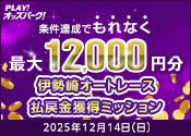 【条件達成でもれなく最大12,000円分】12月14日(日)の伊勢崎オートレース 払戻金獲得ミッション