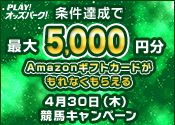 【4月30日競馬で最大5,000円分】条件達成でもれなくもらえるキャンペーン