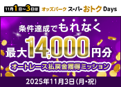 【条件達成でもれなく最大14,000円分】11月3日(月・祝)のオートレース 払戻金獲得ミッション