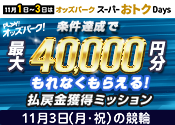 【条件達成でもれなく最大40,000円分】11月3日(月・祝)の競輪 払戻金獲得ミッション