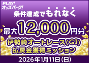 【条件達成でもれなく最大12,000円分】1月11日(日)の伊勢崎オートレース(GI)払戻金獲得ミッション