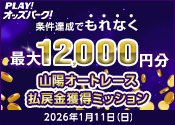 【条件達成でもれなく最大12,000円分】1月1日(木・祝)の山陽オートレース 払戻金獲得ミッション