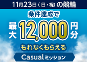 選べるミッション!【条件達成でもれなく最大12,000円分】11月23日(日・祝)の競輪 払戻金獲得 Casualミッション