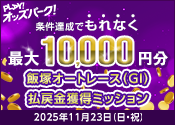 【条件達成でもれなく最大10,000円分】11月23日(日・祝)の飯塚オートレース(GI)払戻金獲得ミッション