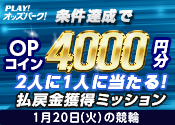 【OPコイン4,000円分】2人に1人に当たる!1月20日(火)の競輪 払戻金獲得ミッション