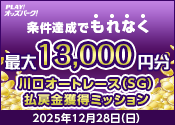 【条件達成でもれなく最大13,000円分】12月28日(日)の川口オートレース(SG)払戻金獲得ミッション
