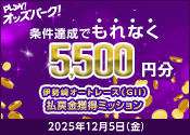 【条件達成でもれなく5,500円分】12月5日(金)の伊勢崎オートレース(GII)払戻金獲得ミッション