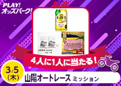 【チューハイ・お米・ステーキから選べる】4人に1人に当たる!3月5日(木)の山陽オートレースミッション