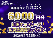 【条件達成でもれなく6,000円分】1月19日(月)の山陽オートレース 払戻金獲得ミッション