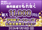【条件達成でもれなく最大11,000円分】1月18日(日)の伊勢崎オートレース 払戻金獲得ミッション
