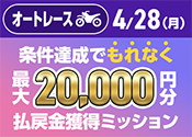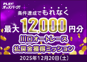【条件達成でもれなく最大12,000円分】12月20日(土)の川口オートレース 払戻金獲得ミッション