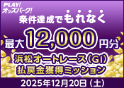 【条件達成でもれなく最大12,000円分】12月20日(土)の浜松オートレース(GI)払戻金獲得ミッション