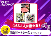 【仙台牛・ワイン・アイスから選べる】3人に1人に当たる!3月8日(日)の飯塚オートレースミッション