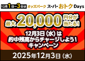 【最大20,000円分】12月3日(水)は的中残高からチャージしよう!キャンペーン