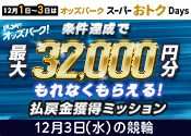 【条件達成でもれなく最大32,000円分】12月3日(水)の競輪 払戻金獲得ミッション