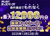 【条件達成でもれなく最大12,000円分】12月22日(月)の飯塚オートレース 払戻金獲得ミッション