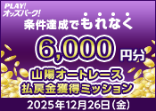 【条件達成でもれなく6,000円分】12月26日(金)の山陽オートレース 払戻金獲得ミッション