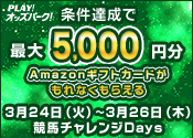 【3月24日-26日競馬で最大5,000円分】条件達成でもれなくもらえる!競馬チャレンジDays