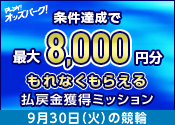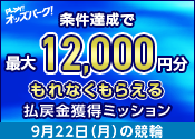 オッズバトル、9月も開催!最大25万円分※ゲットのチャンス!