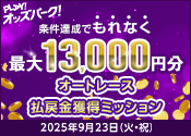 【条件達成でもれなく最大13,000円分】9月23日(火・祝)のオートレース 払戻金獲得ミッション 終了