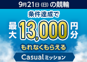選べるミッション!【条件達成でもれなく最大13,000円分】9月21日(日)の競輪 払戻金獲得 Casualミッション 終了