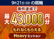 選べるミッション!【条件達成でもれなく最大43,000円分】9月21日(日)の競輪 払戻金獲得 Heavyミッション 終了