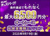 【条件達成でもれなく最大6,500円分】9月19日(金)のオートレース 払戻金獲得ミッション 終了