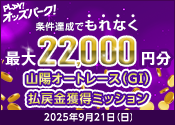 【条件達成でもれなく最大22,000円分】9月21日(日)の山陽オートレース(GI) 払戻金獲得ミッション 終了