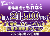 【条件達成でもれなく最大21,500円分】9月22日(月)の山陽オートレース (GI)払戻金獲得ミッション 終了