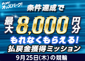 【条件達成でもれなく最大8,000円分】9月25日(木)の競輪 払戻金獲得ミッション 終了