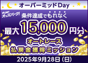 オーバーミッドDay【条件達成でもれなく最大15,000円分】9月28日(日)のオートレース 払戻金獲得ミッション 終了
