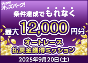 【条件達成でもれなく最大12,000円分】9月6日(土)の伊勢崎オートレース(GI)払戻金獲得ミッション 終了