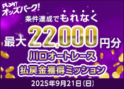 【条件達成でもれなく最大22,000円分】9月21日(日)の川口オートレース 払戻金獲得ミッション 終了