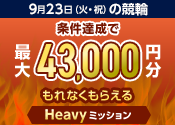 選べるミッション!【条件達成でもれなく最大43,000円分】9月23日(火・祝)の競輪 払戻金獲得 Heavyミッション 終了