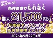 【条件達成でもれなく最大21,500円分】9月22日(月)の伊勢崎オートレース 払戻金獲得ミッション 終了