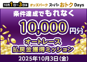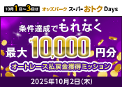 【条件達成でもれなく最大10,000円分】10月2日(木)のオートレース 払戻金獲得ミッション