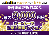 【条件達成でもれなく最大9,000円分】10月1日(水)のオートレース 払戻金獲得ミッション