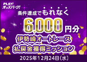 【条件達成でもれなく最大12,000円分】12月25日(木)の伊勢崎オートレース 払戻金獲得ミッション