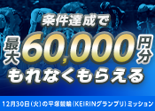 【条件達成でもれなく最大60,000円分】12月30日(火)平塚競輪(KEIRINグランプリ)ミッション