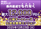 【条件達成でもれなく最大12,000円分】12月25日(木)の山陽オートレース 払戻金獲得ミッション