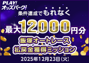 【条件達成でもれなく最大12,000円分】12月7日(日)の飯塚オートレース 払戻金獲得ミッション
