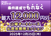 【条件達成でもれなく最大12,000円分】12月25日(木)の山陽オートレース 払戻金獲得ミッション