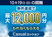 選べるミッション!【条件達成でもれなく最大12,000円分】10月19日(日)の競輪 払戻金獲得 Casualミッション