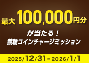 応募不要 12月31日(水)-1月1日(木・祝)は最大97%の方に最大10万円分が当たる!競輪コインチャージキャンペーン
