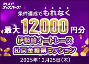【条件達成でもれなく最大12,000円分】12月25日(木)の伊勢崎オートレース 払戻金獲得ミッション