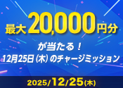 最大20,000円分が当たる!12月25日(木)のチャージミッション
