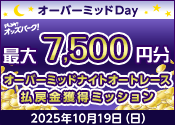 【最大7,500円分】10月19日(日)のオーバーミッドナイトオートレース 払戻金獲得ミッション