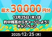 【最大30,000円分】12月25日(木)は的中残高からチャージしよう!キャンペーン