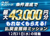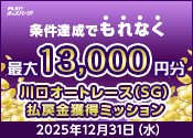 【条件達成でもれなく最大13,000円分】12月31日(水)の川口オートレース(SG)払戻金獲得ミッション